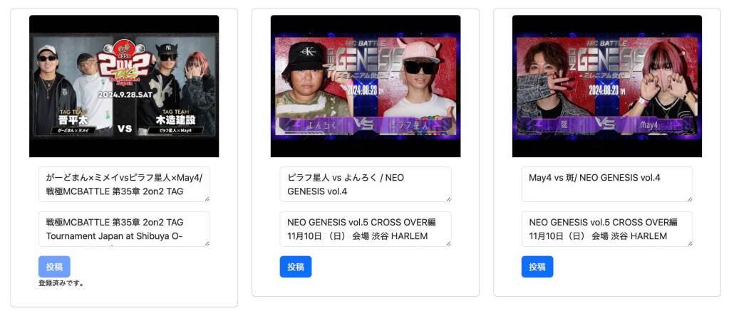 - 投稿したい作品の「投稿」ボタンをクリックします。
